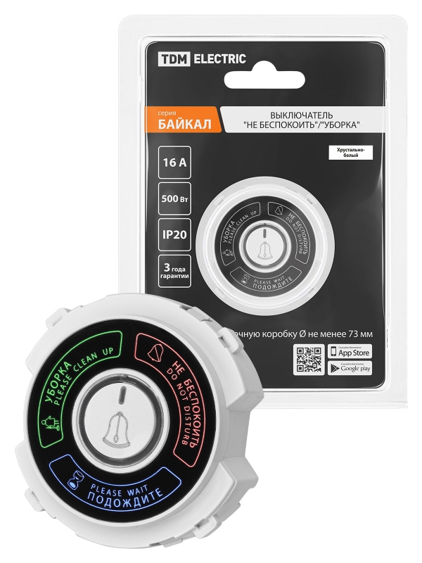 Выключатель Не беспокоить/Уборка 16А 250В белый, Байкал TDM | код SQ1819-0047 | TDM