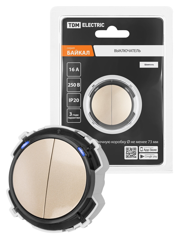 Выключатель 2-кл. 16А 250В кнопочный механизм шампань, Байкал TDM | код SQ1819-0524 | TDM