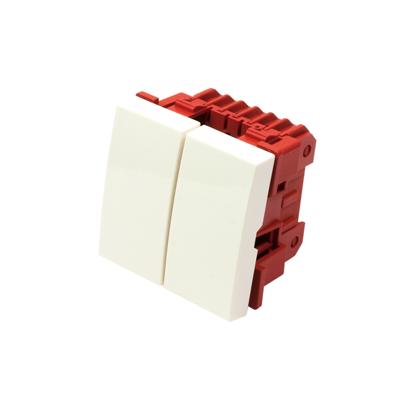 Выключатель двухклавишный, Mosaic 45х45, белый | код LAN-EC45x45-S22-WH | LANMASTER