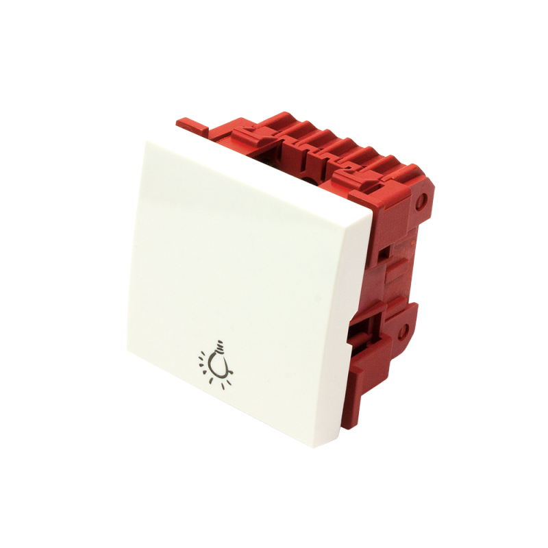 Выключатель одноклавишный, значок лампа, Mosaic 45х45, белый | код LAN-EC45x45-S1L-WH | LANMASTER