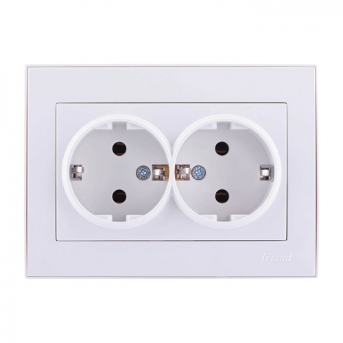 Розетка двойная с/з керамика белый (10шт/120шт) | код 703-0202-127 | Lezard