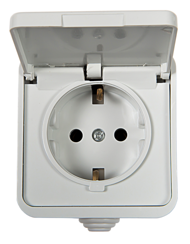 Розетка одинарная с заземлением с крышкой AQUA белая полугерметичная 3112 IN HOME | код 4690612000459 | IN HOME