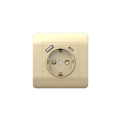 (NEW3-E) Розетка с/з со шторками, 16А+ USB двойная A+С, 5В/2,1А, шампань | код 431453 | CHINT