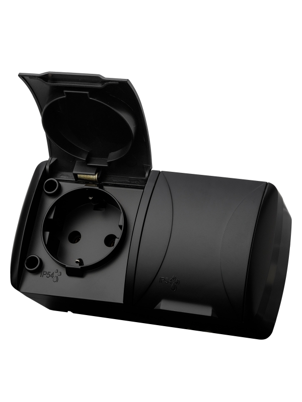 Розетка двойная 2П+3 открытой установки IP54 16А с крышкой графит Селигер TDM | код SQ1818-0314 | TDM