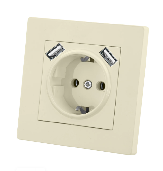 Розетка 2П+З 16А 250В + 2 USB порта 2,1А 5В сл. кость Сенеж TDM | код SQ1816-0153 | TDM