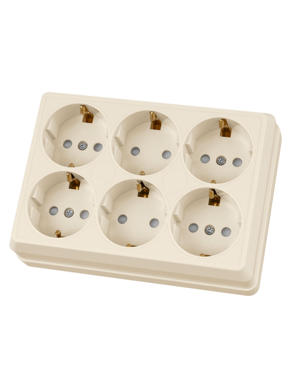 Розетка шестиместная 2П+3 открытой установки IP20 16A с защитными шторками сл.кость Ладога TDM | код SQ1801-0247 | TDM