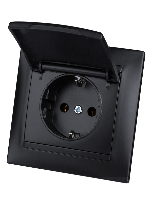 Розетка 2П+З 16А 250В IP44 с крышкой графит Лама TDM | код SQ1815-0626 | TDM