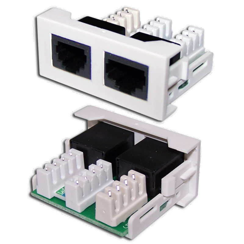 Вставка Mosaic 22.5x45 1xRJ45 Cat.5e + 1xRJ12 Cat.3, белая | код LAN-WA-LP-4512-WH | LANMASTER