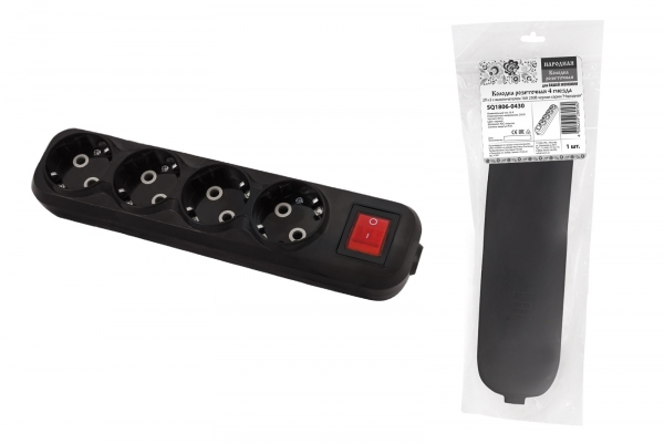Колодка розеточная 4 гнезда 2П+3 c выключателем 16А 250В черная серии Народная | код SQ1806-0430 | TDM НАРОДНЫЙ