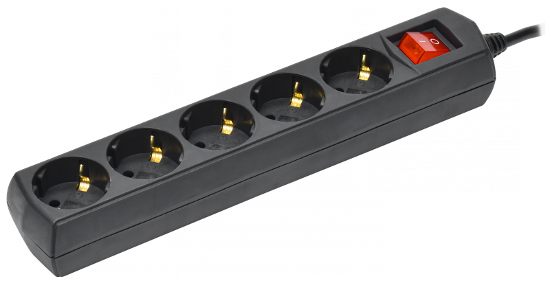 Удлинитель У05В 5 мест с/з 5м 3х1мм2 10А 250В чер. GENERICA | код WYP10-10-05-05-ZK-K02-G | GENERICA by IEK