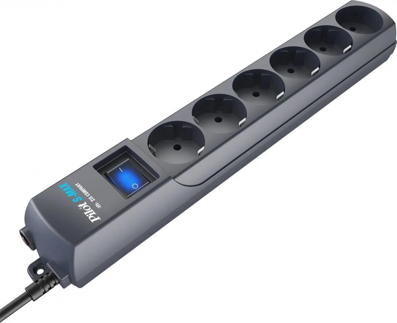 Сетевой фильтр Pilot S-Max 1.8м (6 розеток) серый (коробка) | код 1730295 | PILOT