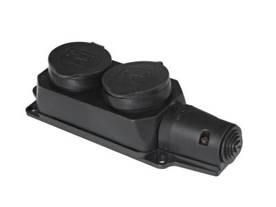 Розетка двухместная с заглушками каучук 2Р+РЕ 16А 220В IP44 HLT | код 083-05-05 | HLT