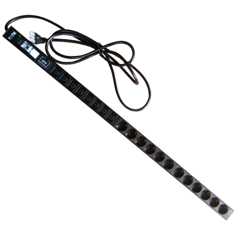 Блок розеток вертикальный, 1-фазный с автоматом, 16A / 250V, 8xC13 + 12xSchuko, шнур 3.0 м, вилка Schuko | код TWT-PDV-12GS-8C3-GP | TWT