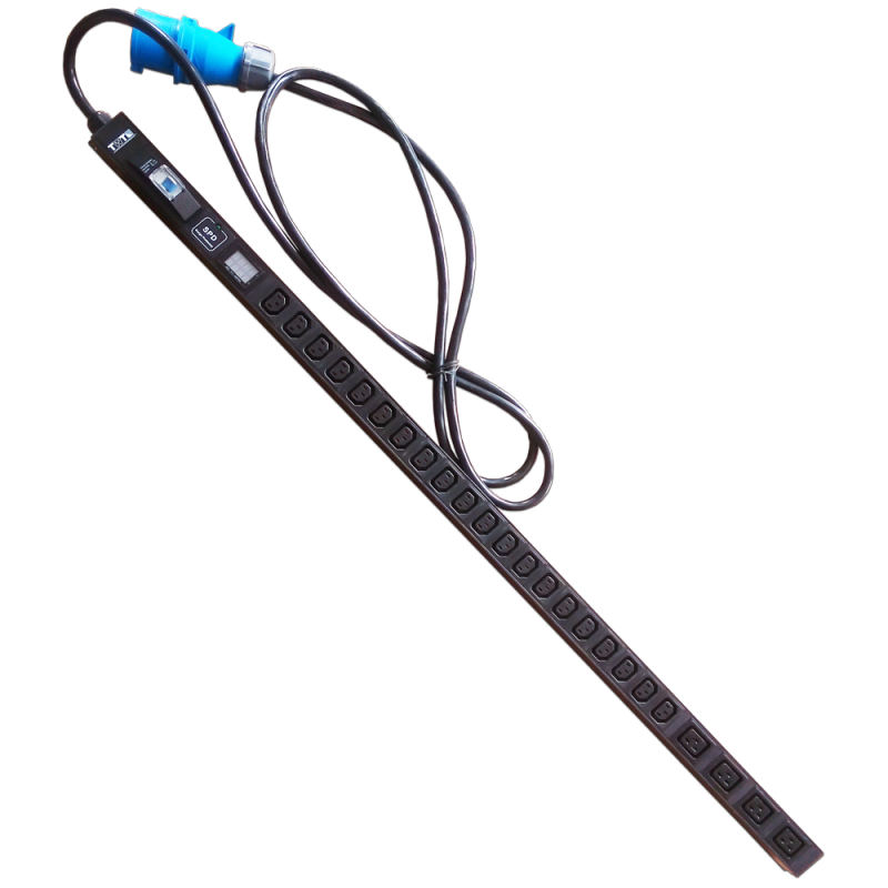 Блок розеток вертикальный, 1-фазный с автоматом, A/V-метр, 32A / 250V, 4xC19 + 20xC13, шнур 3.0 м, разъем IEC309 | код TWT-PDVI-4C9-20C3-I9 | TWT