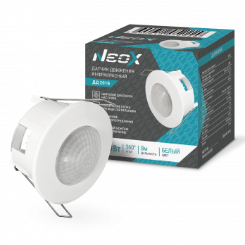 Датчик движения инфракрасный встраиваемый ДД 201Б 1200Вт 360 гр. 8м IP20 белый NEOX | код 4690612052229 | NEOX