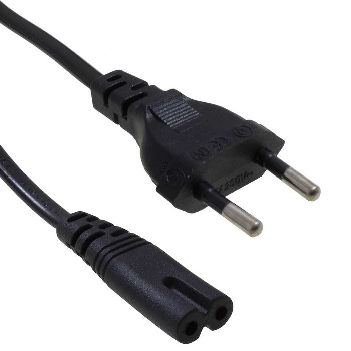 Шнур сетевой 2-х полюсный прямой RUICHI, вилка CEE7/16 - розетка IEC C7, 1.8 м, 2x0.75 мм2, чёрный | код 112895 | Ruichi