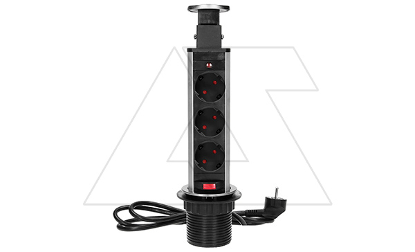 Блок розеточный встраиваемый выдвижной d=60мм, 3x2P+E со шторками, 3680вт, кабель 1,8м, нержавеющая сталь | код OR-AE-1348-AL | ORNO