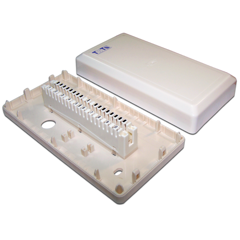 Настенная коробка с установленными плинтами, 1 размыкаемый плинт, 10 пар, пластик | код TWT-DB10-1P-DIS | TWT