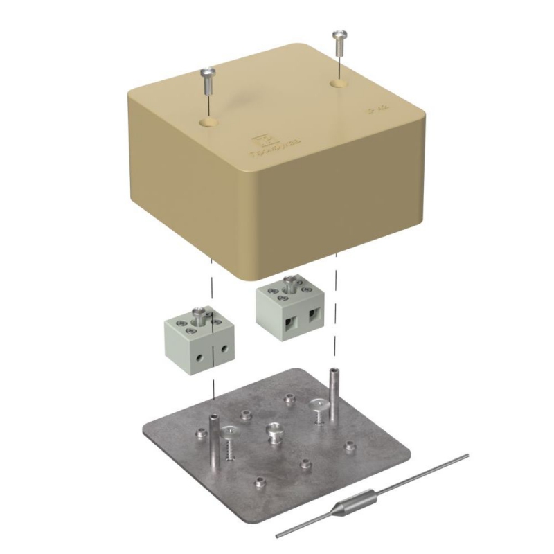 Коробка огнестойкая для кабель-канала 40-0460-FR6.0-4-П Е15-Е120 с термопредохранителем RAL1001 85х85х45 (44 шт/кор) Промрукав | код 40-0460-1001-FR6.0-4-П | ПРОМРУКАВ