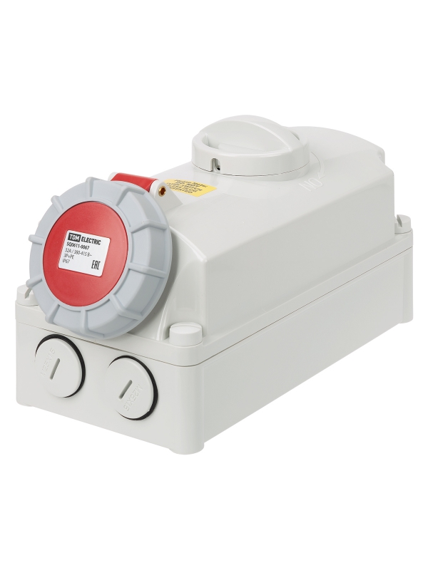 Розетка настенная, с выключателем и блокировкой IP67 32А 3Р+РЕ 380В TDM | код SQ0611-0067 | TDM