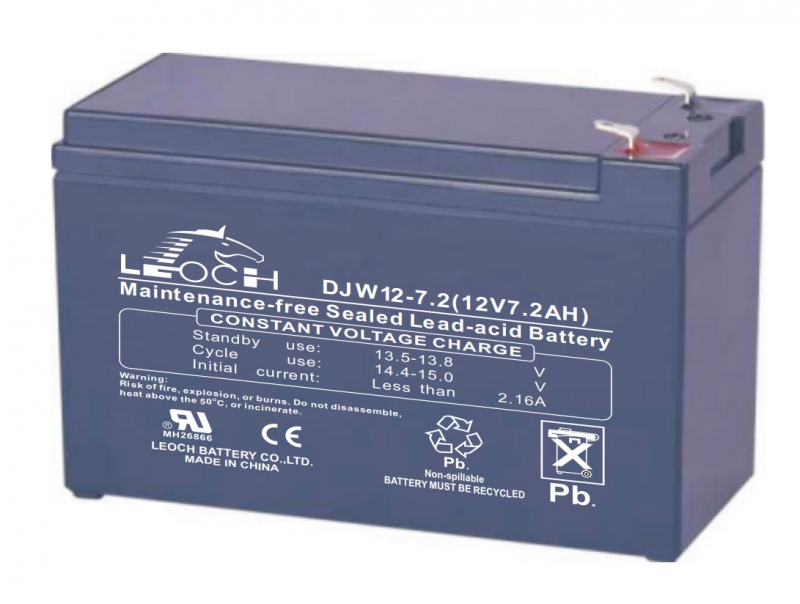 LEOCH DJW 12-7,2 Аккумуляторная батарея, напряжение: 12В, ёмкость: 7,2Ач, клеммы типа: F2, Размеры ВШГ: 99x65x151мм, вес: 2,5кг. Срок службы: 8 лет. | код DJW12-7.2 | LEOCH
