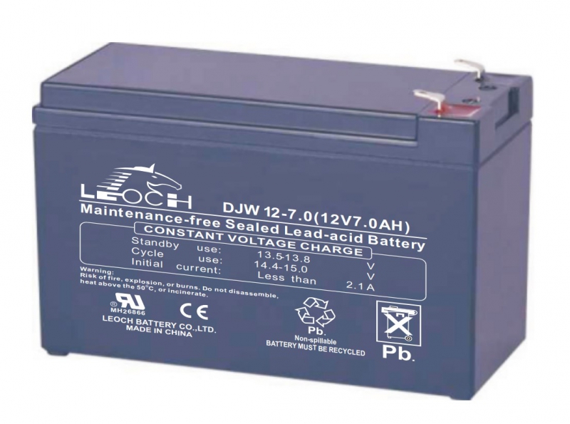 LEOCH DJW 12-7,0 Аккумуляторная батарея, напряжение: 12В, ёмкость: 7,0Ач, клеммы типа: F2, Размеры ВШГ: 93,5x65x151мм, вес: 2,06кг. Срок службы: 8 лет. | код DJW12-7.0 | LEOCH