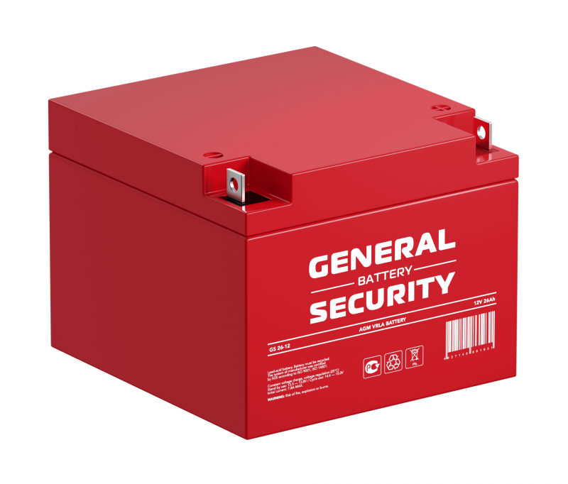 GS26-12 Аккумуляторная батарея систем охраны и пожарной безопасности, напряжение: 12В, ёмкость: 26Ач, клеммы типа: F3, Размеры ДШВ: 166х175х125мм, вес: 7,3кг. Срок службы: до 5 лет. | код GS26-12 | GENERAL SECURITY