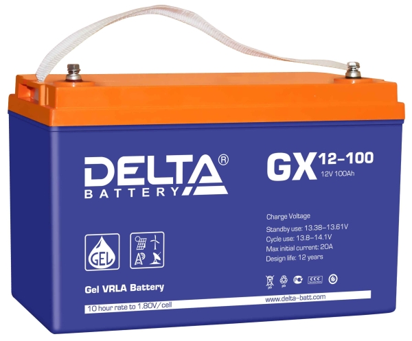 Аккумуляторная батарея GX 12-100, напряжение 12В емкость 100Ач. Устойчива к глубоким разрядам, имеет продолжительный срок службы. Delta | код 4614010170002 | DELTA