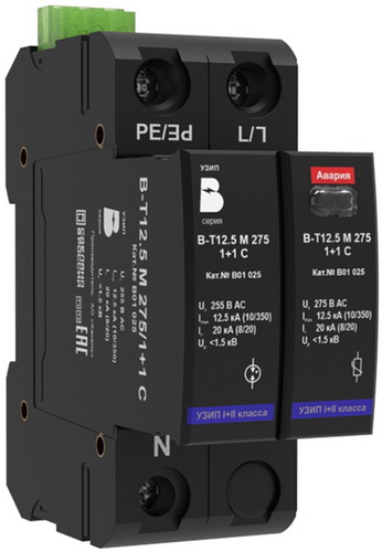 Двухполюсное УЗИП класса испытаний I+II комбинированного типа серии БЛИЦ Т, В-Т12,5 М 275/1+1 С | код В01 025 | Hakel