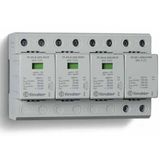 Устройство защиты от импульсных перенапряжений УЗИП тип 1+2 (3 варистор/искровый разрядник + 1 искровый разрядник), (255В АС) | код 7P048255S007 | FINDER