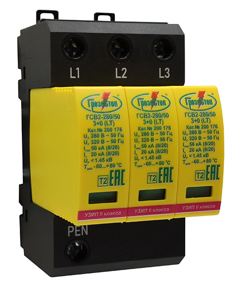 Трехполюсные УЗИП класса испытаний II ограничивающего типа. ГСВ2-320/40 3+0 С | код 200 177 | Hakel