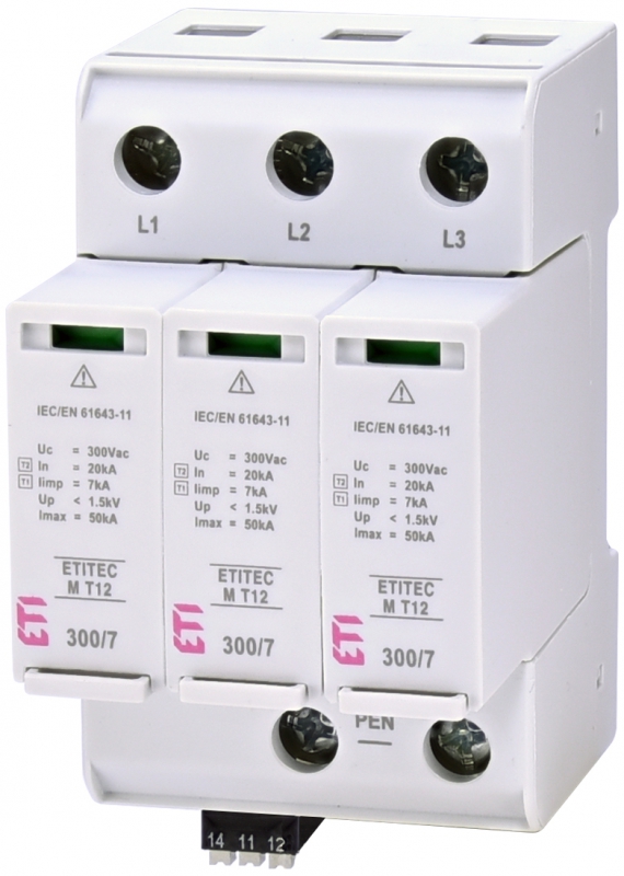 Ограничитель перенапряжения ETITEC M T12 300/7 (3+0, 3p, TNC) RC | код 002440505 | ETI