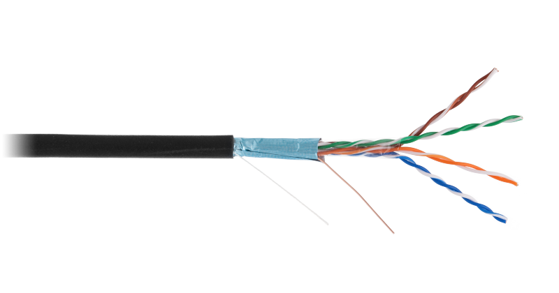 Кабель NETLAN F/UTP 4 пары, Кат.5е, внешний, PE -40C, одножильный, 100МГц, черный, 1м | код _EC-UF004-5E-PE-BK_SL001 | NETLAN