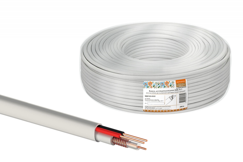 Кабель для видеонаблюдения КВК-В-2 2х0.5 мм (200м) для внутренней прокладки. белый народный ТРТС | код SQ0123-0101 | РЭМЗ ТМ