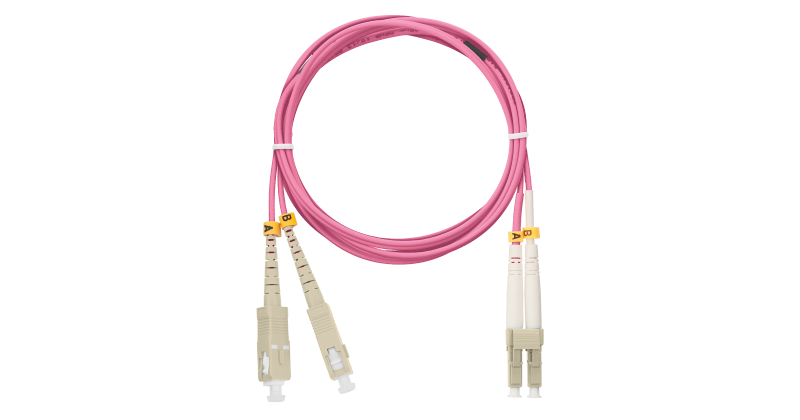 Шнур NIKOMAX волоконно-оптический, переходной, многомодовый 50/125мкм, стандарта ОM4, SC/UPC-LC/UPC, двойной, LSZH нг(A)-HFLTx, 2мм, маджента, 1м | код NMF-PC2M4C2-SCU-LCU-001 | NIKOMAX