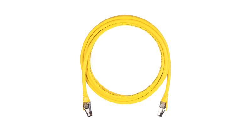 Коммутационный шнур NIKOMAX S/FTP 4 пары, Кат.8 (Класс I), 2000МГц, 2хRJ45/8P8C, T568B, заливной, с защитой защелки, многожильный, BC (чистая медь), 24AWG (7х0,195мм), LSZH нг(А)-HFLTx, желтый, 5м | код NMC-PC4SI55B-050-C-YL | NIKOMAX Серия