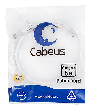 Cabeus PC-UTP-RJ45-Cat.5e-1.5m-WH Патч-корд U/UTP, категория 5е, 2xRJ45/8p8c, неэкранированный, белый, PVC, 1.5м | код 7694c | Cabeus