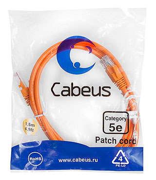 Cabeus PC-UTP-RJ45-Cat.5e-1m-OR-LSZH Патч-корд U/UTP, категория 5е, 2xRJ45/8p8c, неэкранированный, оранжевый, LSZH, 1м | код 9521c | Cabeus