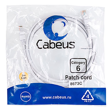 Cabeus PC-UTP-RJ45-Cat.6-2m-WH Патч-корд U/UTP, категория 6, 2xRJ45/8p8c, неэкранированный, белый, PVC, 2м | код 8672c | Cabeus