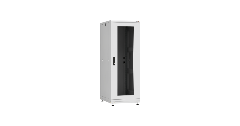 Напольный шкаф 19, 33U, стеклянная дверь, Ш600хВ1610хГ800мм, в разобранном виде, серый | код TFR-336080-GMMM-R-GY | TLK