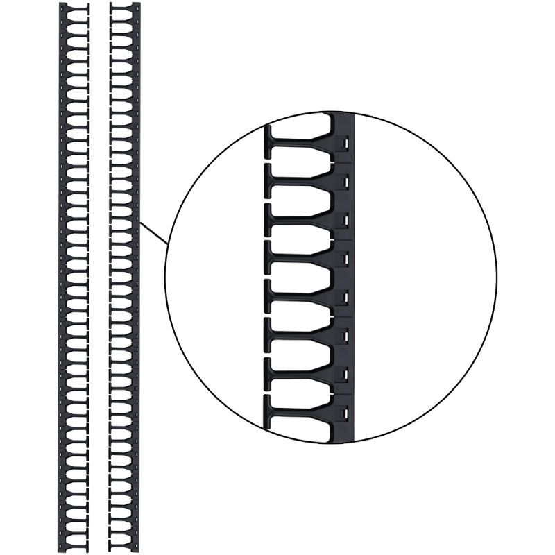 Кабельная гребенка 42U с пальцами глубиной 169 мм, для шкафов LANMASTER DCS шириной 800 мм, 2 шт. в компл., черная | код LAN-DC-CB-42Ux8-PF/L | LANMASTER