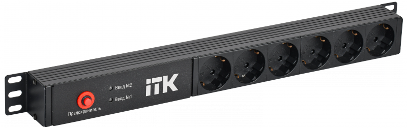 ITK PDU с АВР 6 розеток Schuko 1U без шнура 2 вх. C14 | код PH30-06D-41 | ITK by IEK