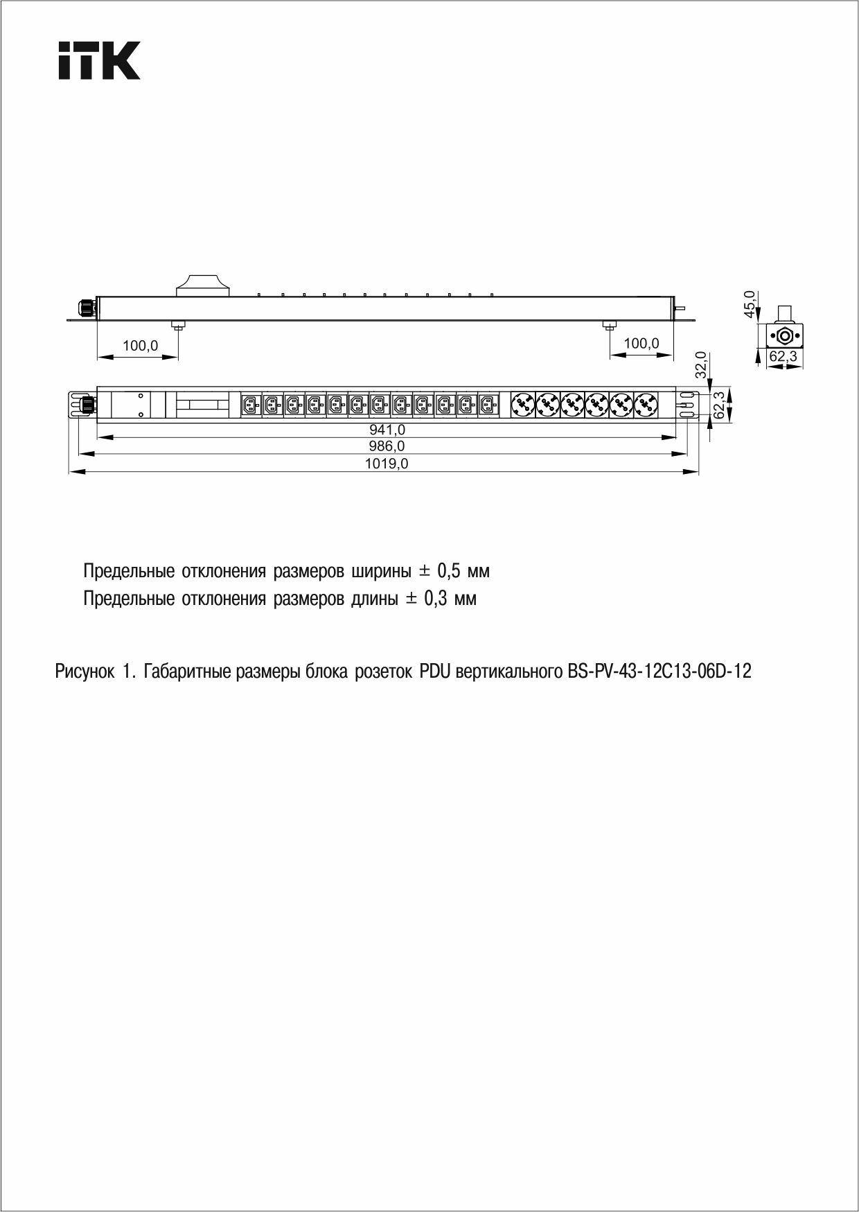 ITK BASE PDU PV1112 23U 1ф 32А 6SCHUKO 12C13 3м IEC60309 | код BS-PV-43-12C13-06D-12 | ITK by IEK