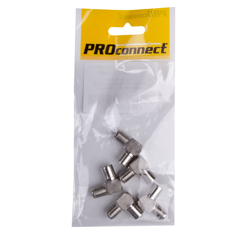 Переходник антенный, (гнездо F - штекер TV), угловой (5шт.) (пакет) PROconnect | код 05-4311-4-9 | PROCONNECT