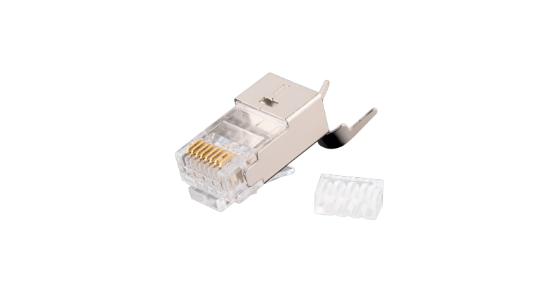 Коннектор NIKOMAX RJ45/8P8C под витую пару, Кат.6a(Класс Ea), 500МГц, покрытие 50мкд, универсальные ножи, экранированный, со вставкой, с хвостовиком, круглый ввод, уп-ка 100шт. | код NMC-RJ88RZ50SA3-T-100 | NIKOMAX