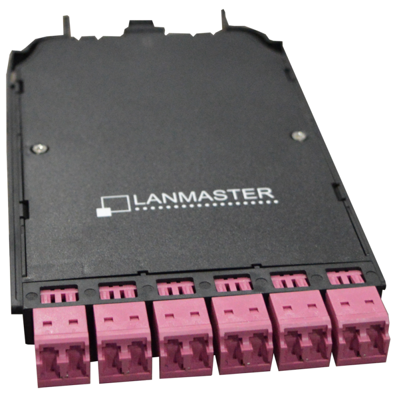 Компактная MPO кассета OM4, 12xLC, тип B, низкие потери, черная | код LAN-MCCB-1M-12LC/OM4 | LANMASTER