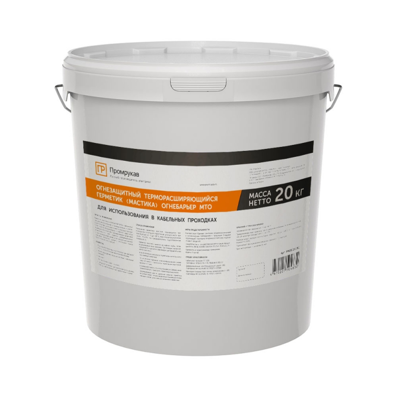 Герметик - мастика огнезащитный терморасширяющийся Огнебарьер МТО 20 кг Промрукав | код PR08.21181 | ПРОМРУКАВ