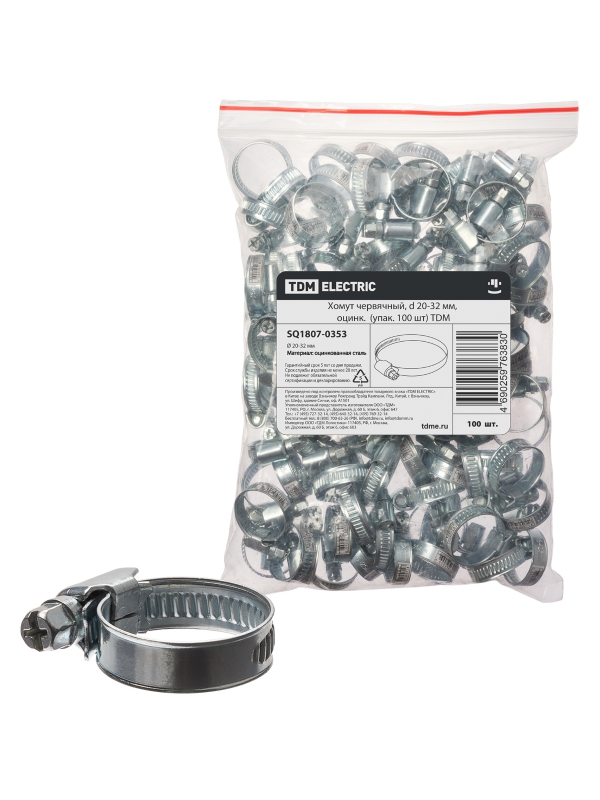 Хомут червячный, d 20-32 мм, оцинк (упак. 100 шт) TDM | код SQ1807-0353 | TDM