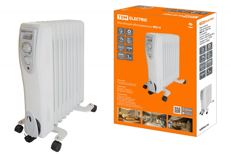 Масляный обогреватель МО-9, 2000 Вт, 9 секций, регул. мощн. (700/1300/2000 Вт), термостат, TDM | код SQ2501-0902 | TDM