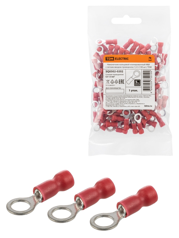 Наконечник кольцевой изолированный НКИ с легким вводом проводника 1,5-5 (100 шт.) TDM | код SQ0502-0202 | TDM